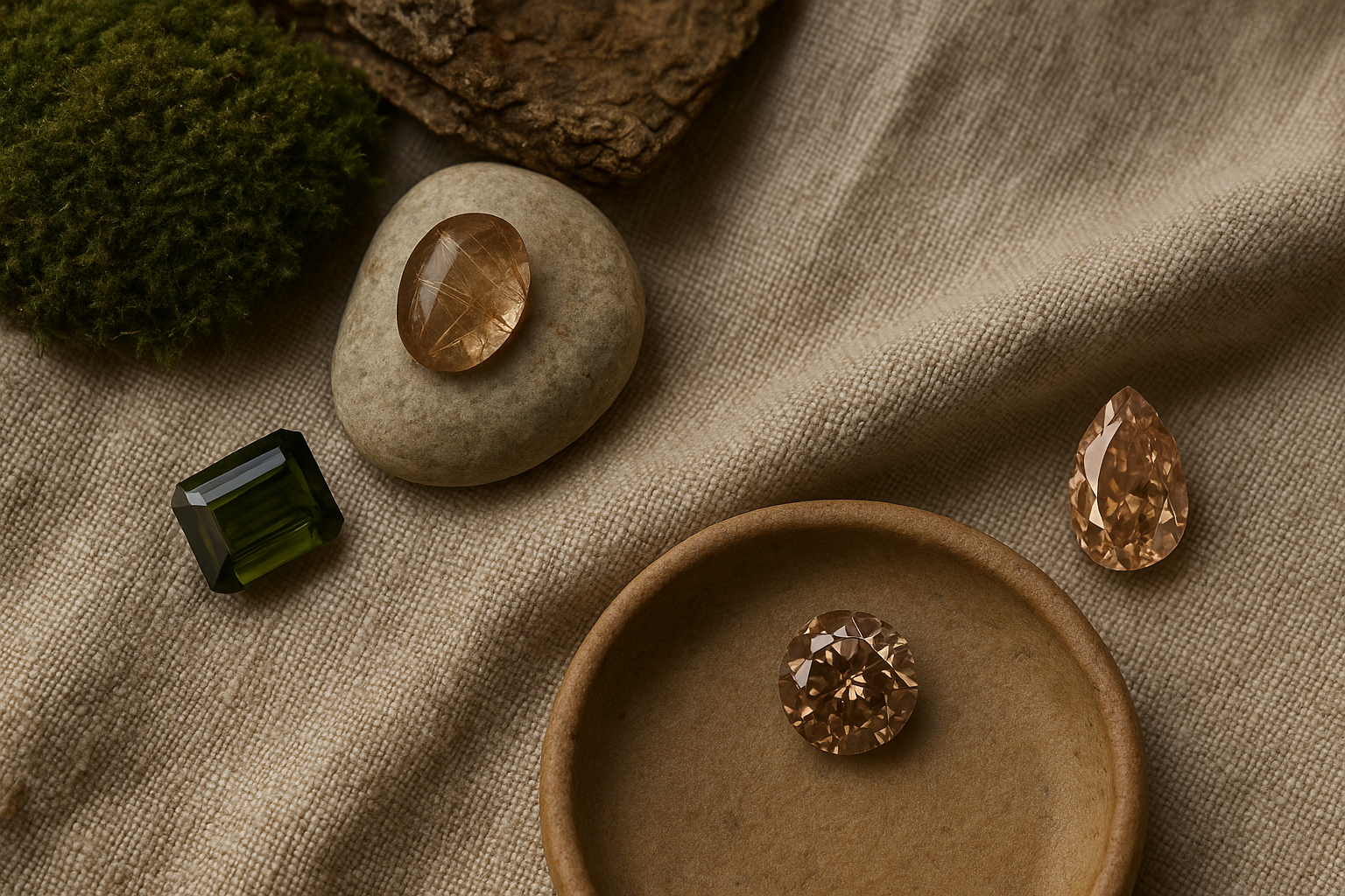 Subtle tones, textured forms and stones that hold quiet power; rooted in nature, and in something deeper.