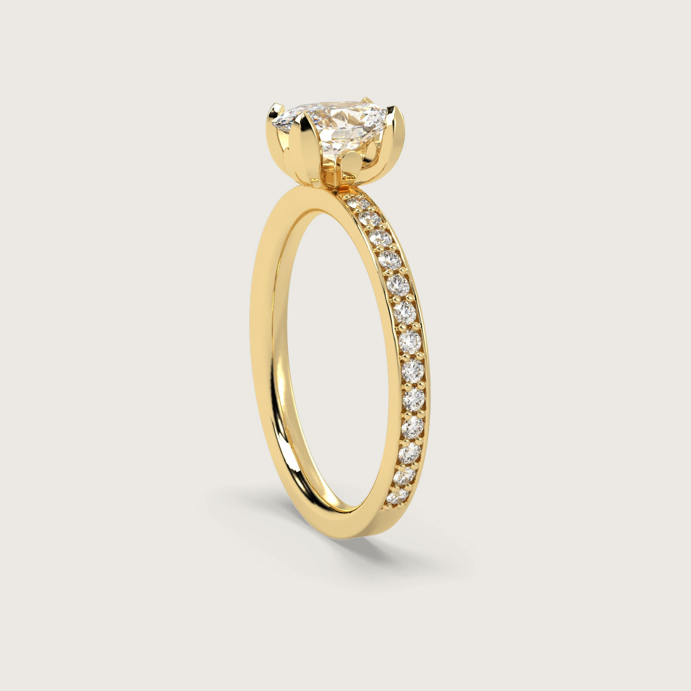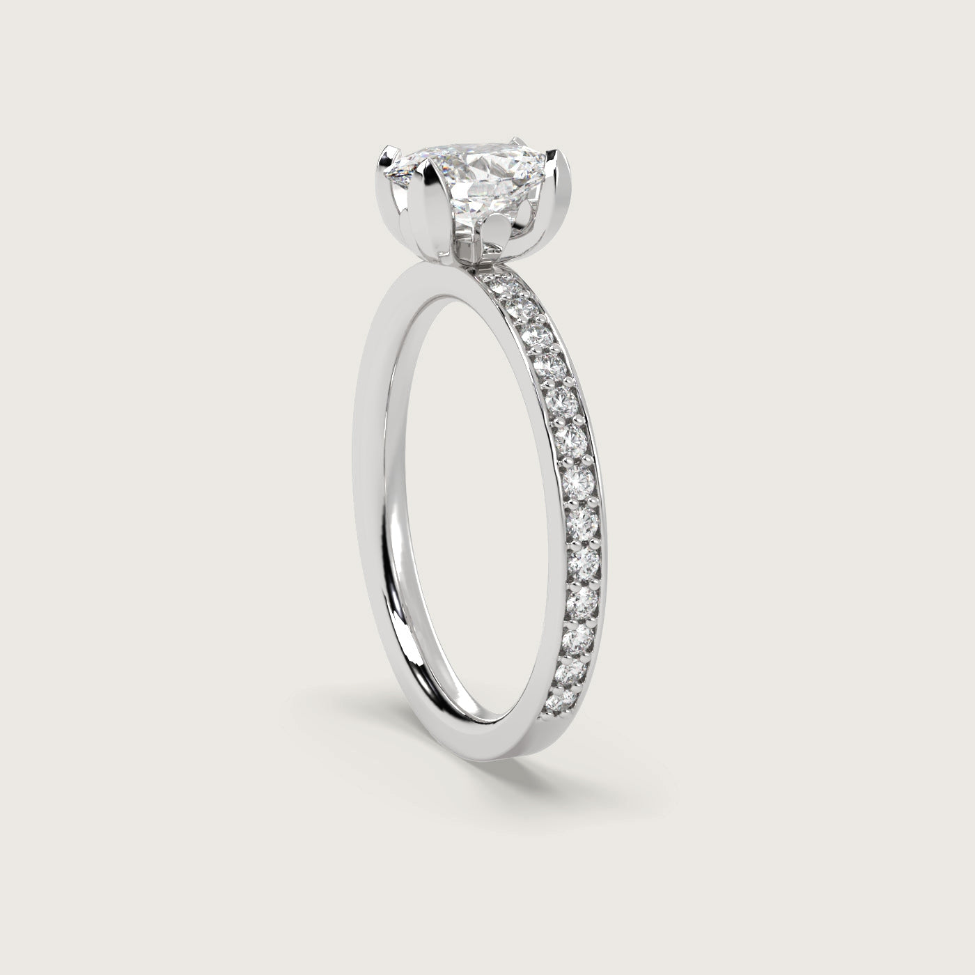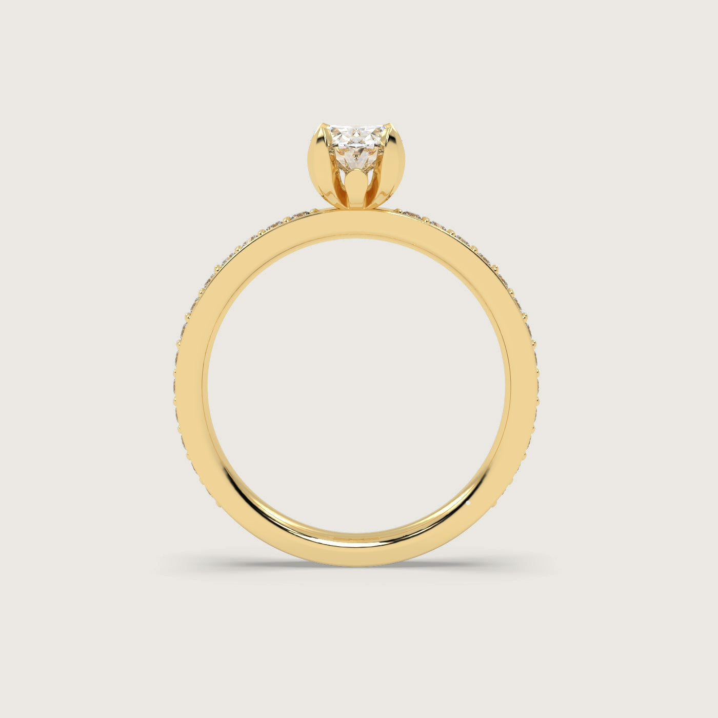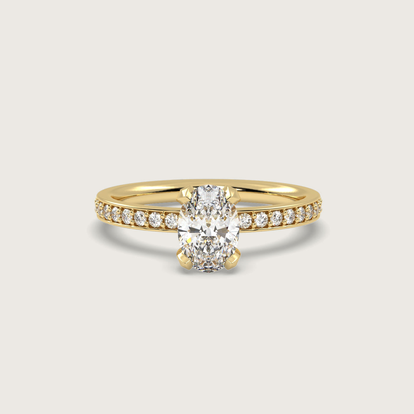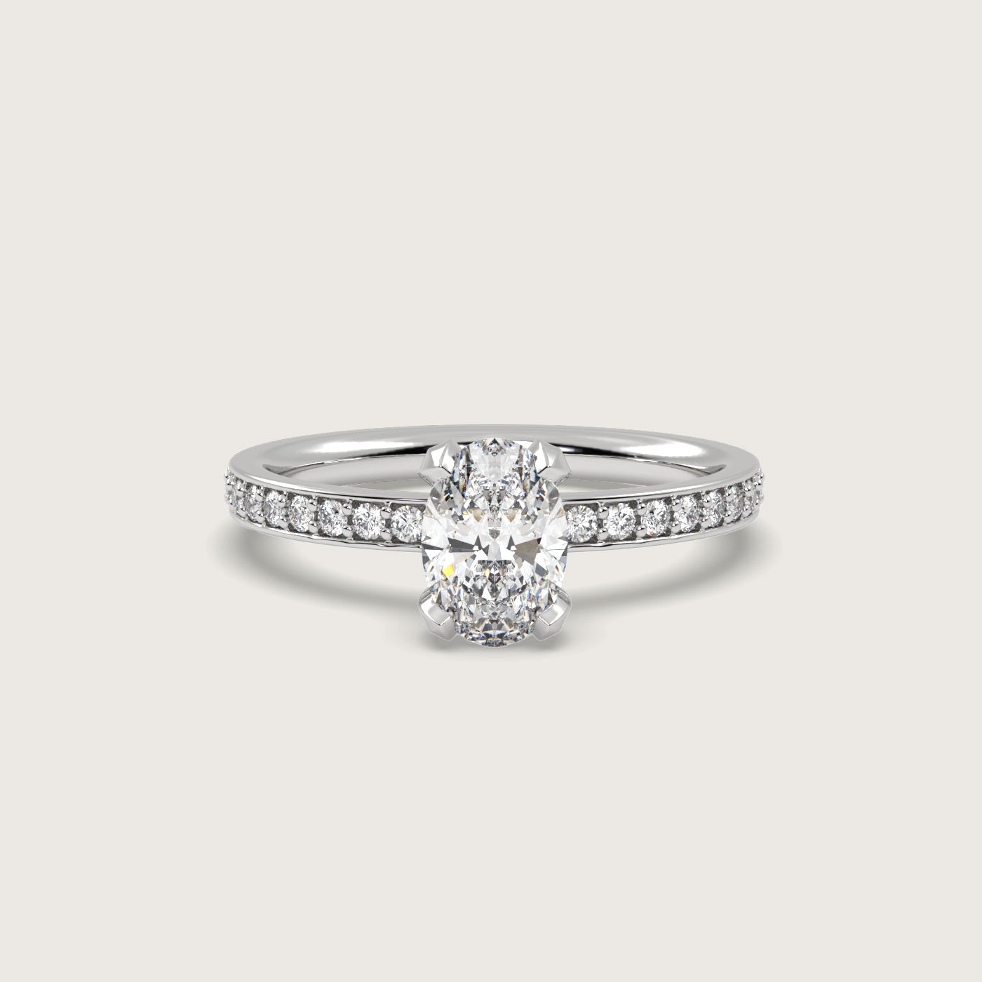 Oval Diamond Solitaire Ring with Pavé Set Band in Fleur de Luce Setting