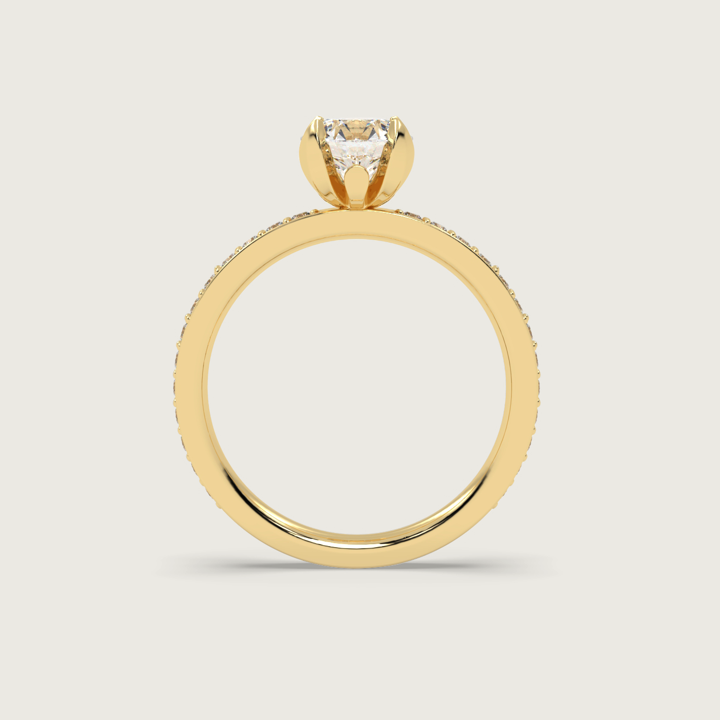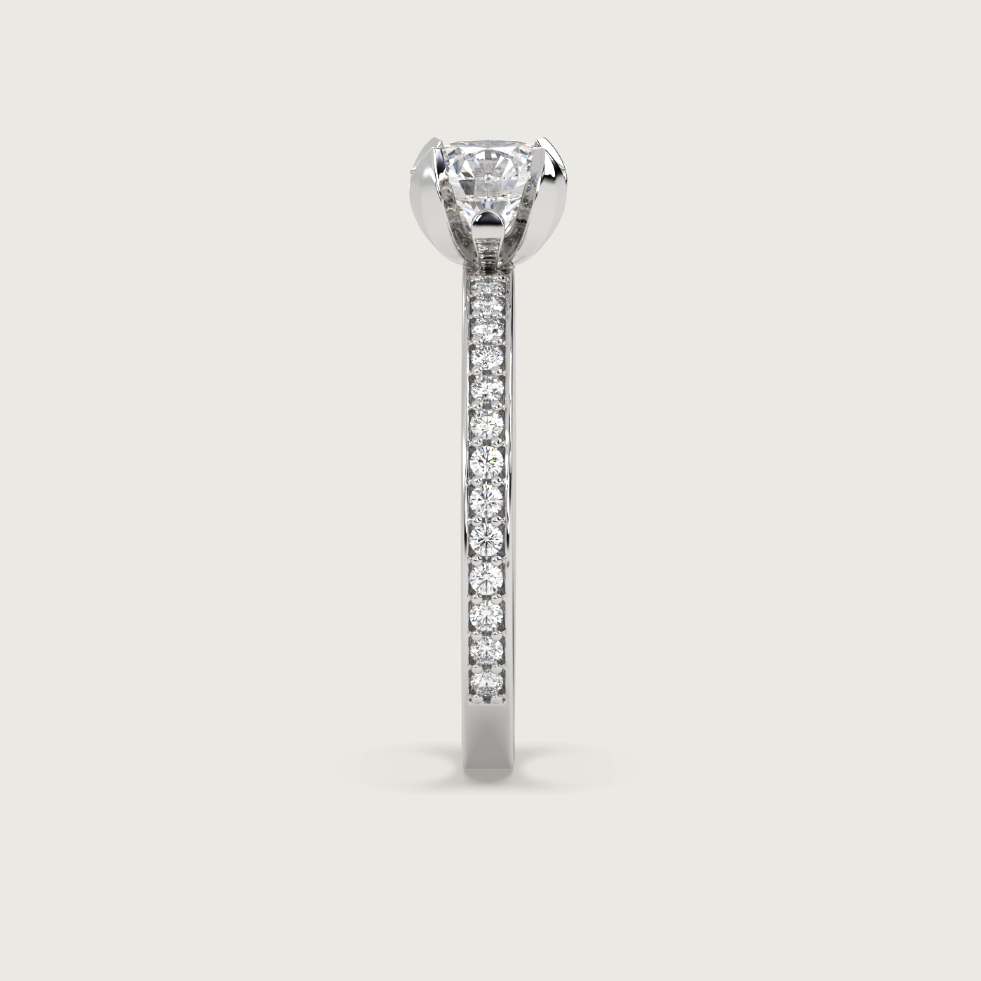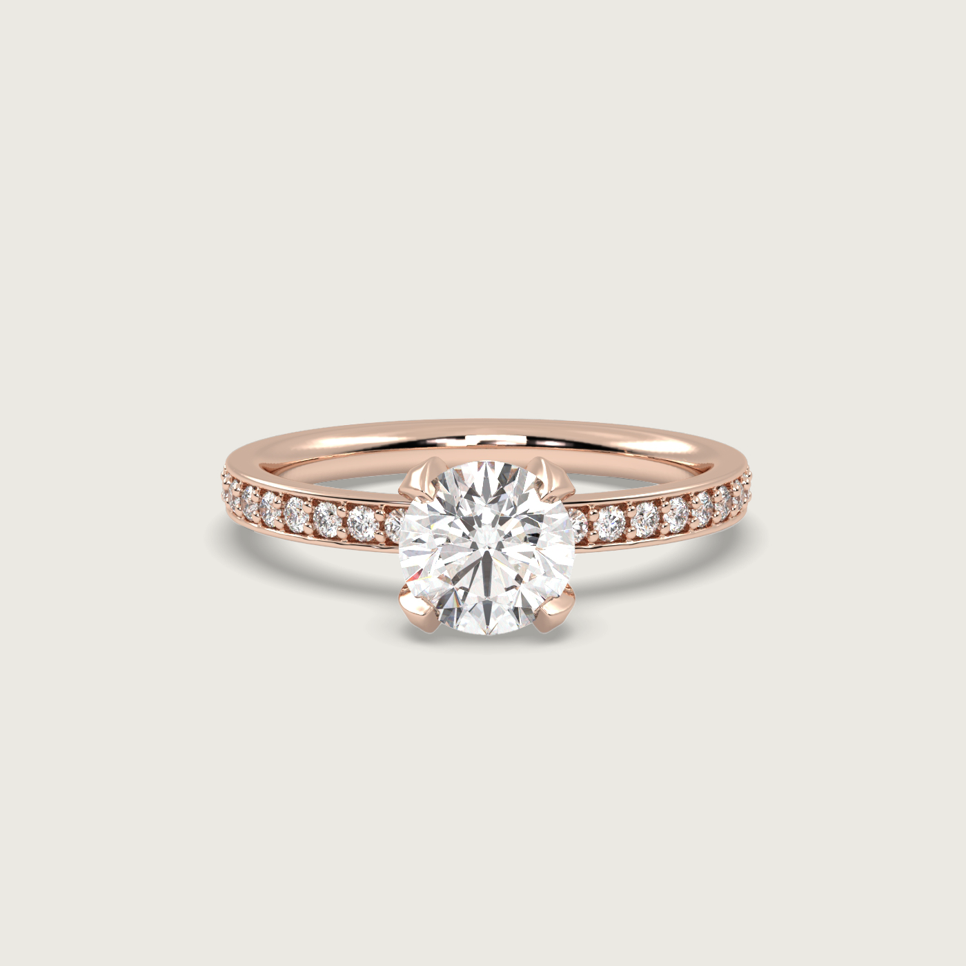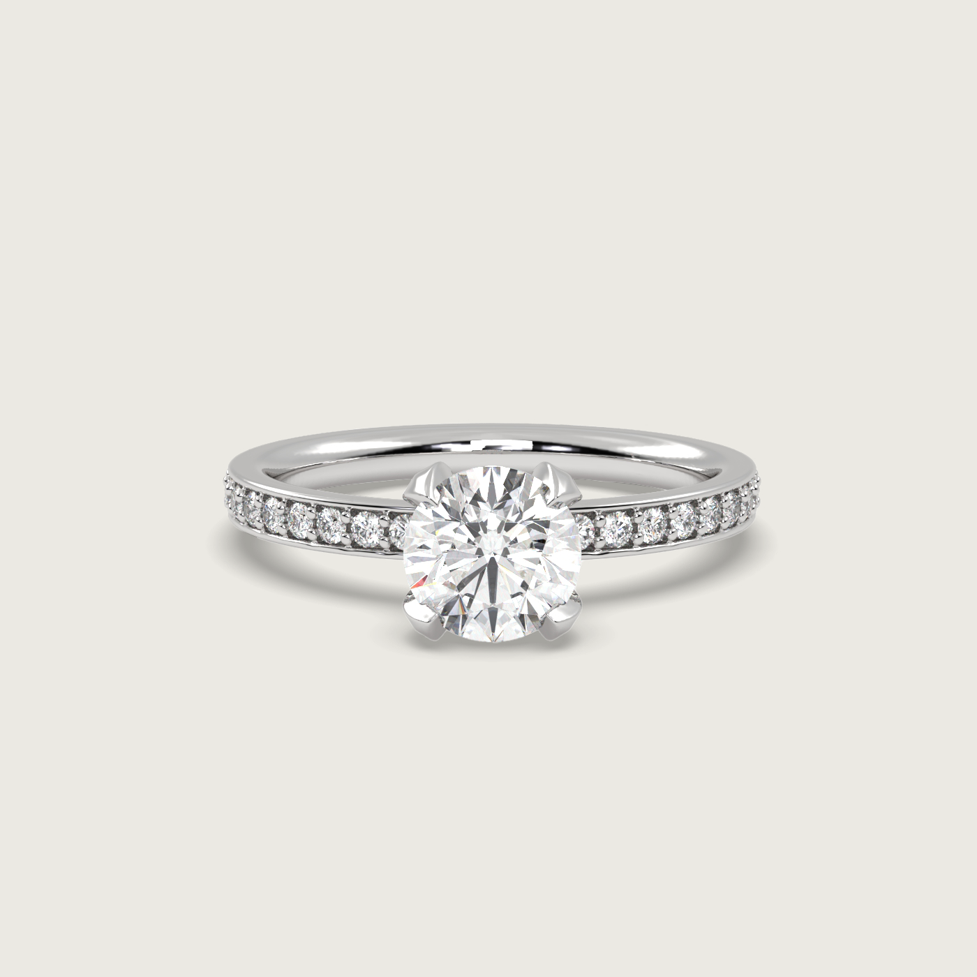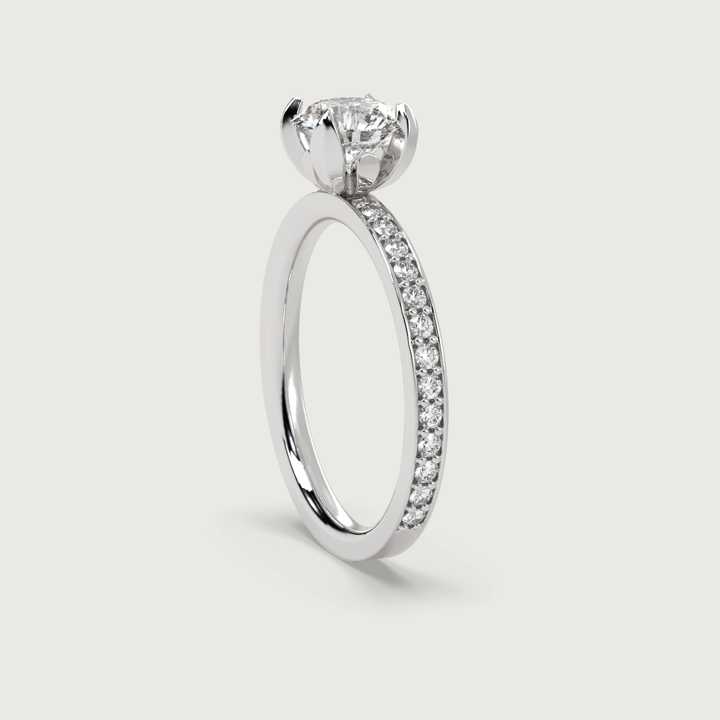 Round Diamond Solitaire Ring with Pavé Set Band in Fleur de Luce Setting