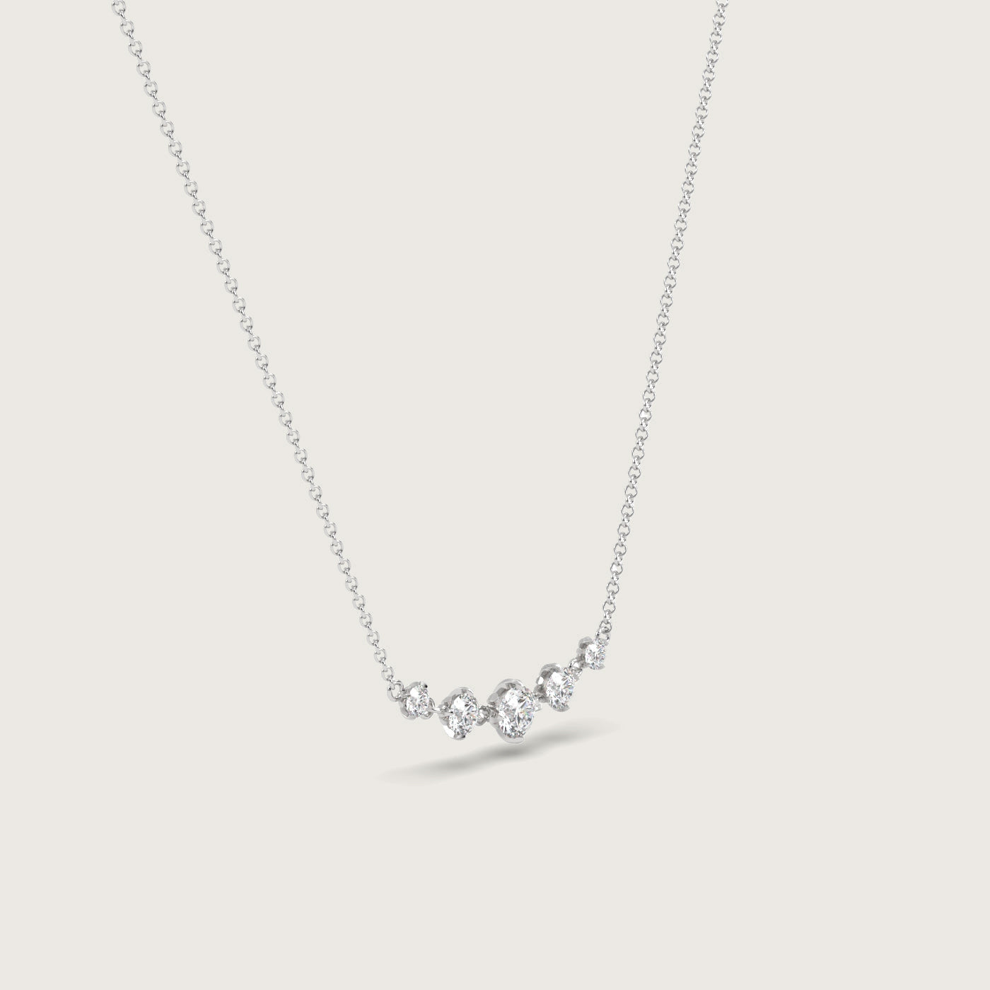 A quiet chorus of brilliance. This necklace sets five natural, white diamonds in a perfect line within Marla Design's signature Fleur de Luce setting. Soft sparkle, graceful form and meaning in every facet.