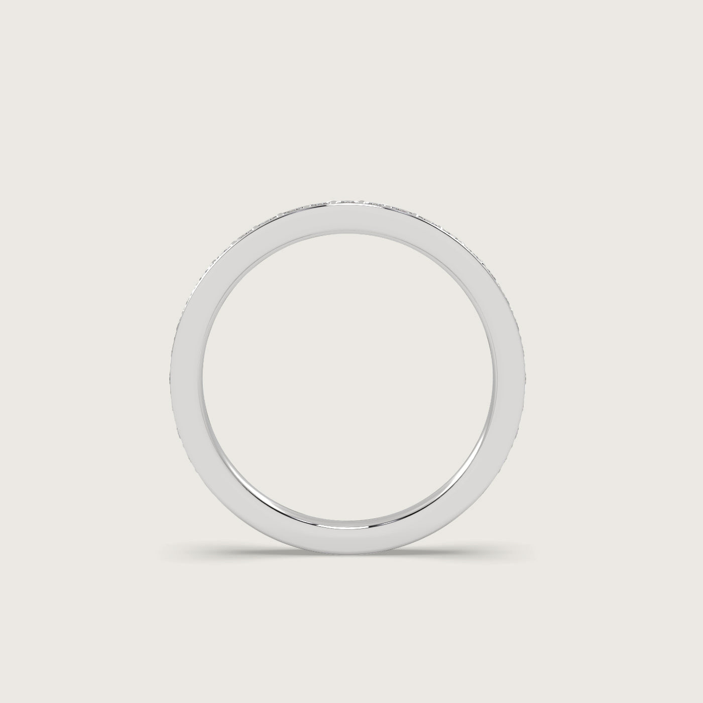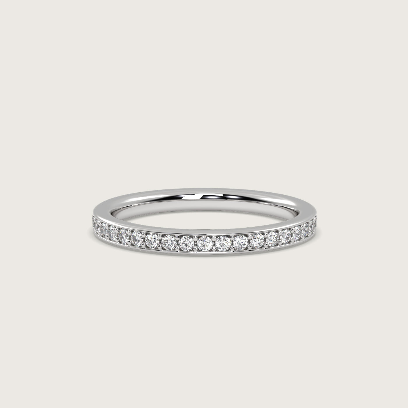 Endless light. This eternity band encircles the finger with round white diamonds in a grain setting. Timeless beauty, made to last.