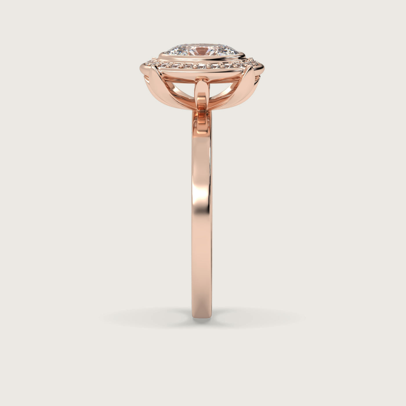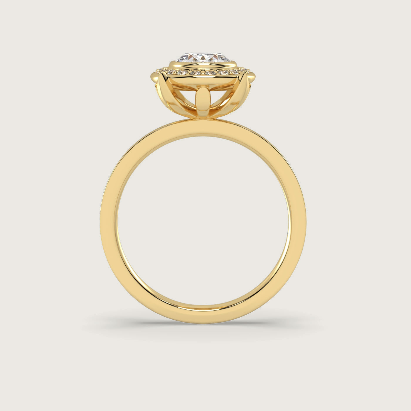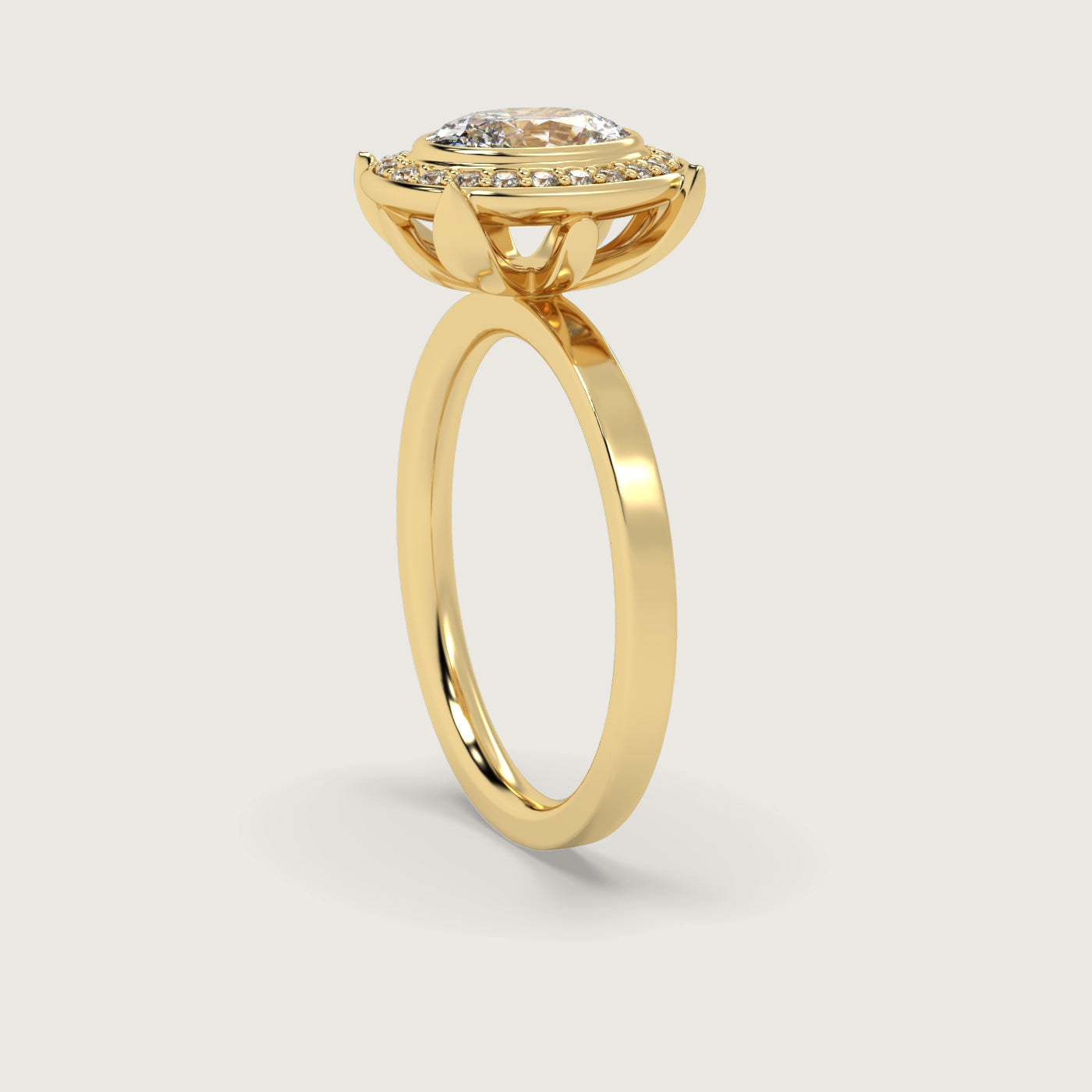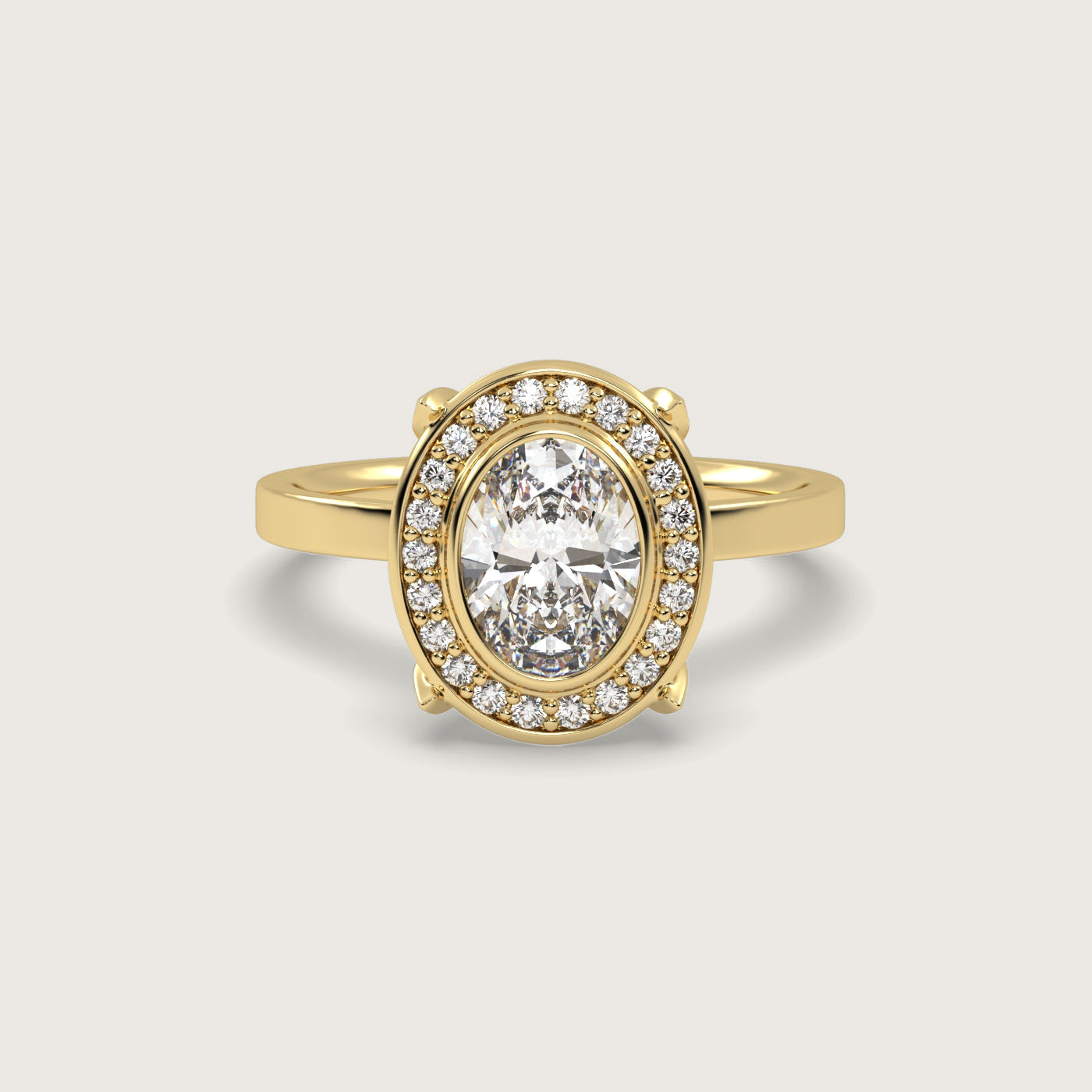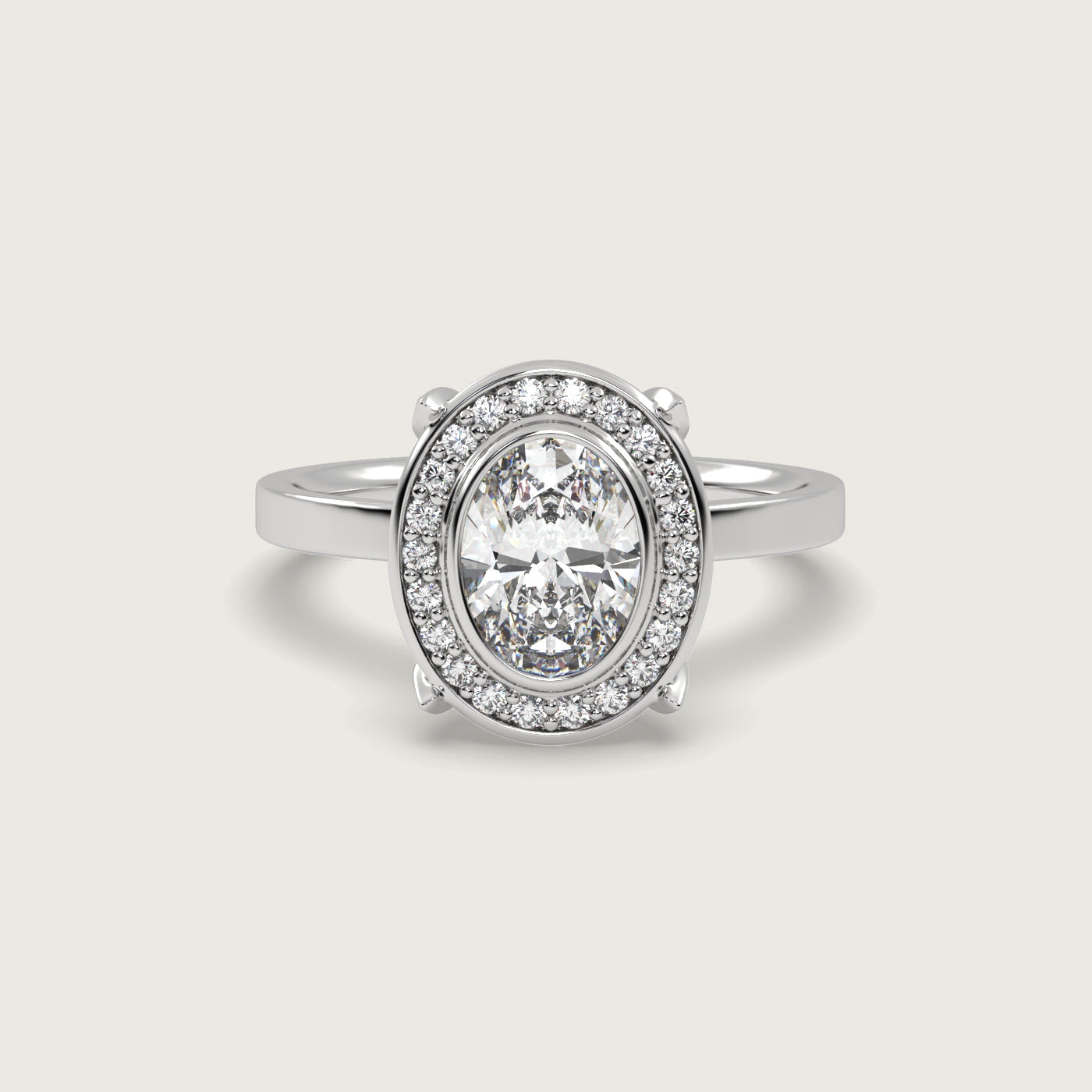 Oval Diamond Halo Engagement Ring in Fleur de Luce Setting