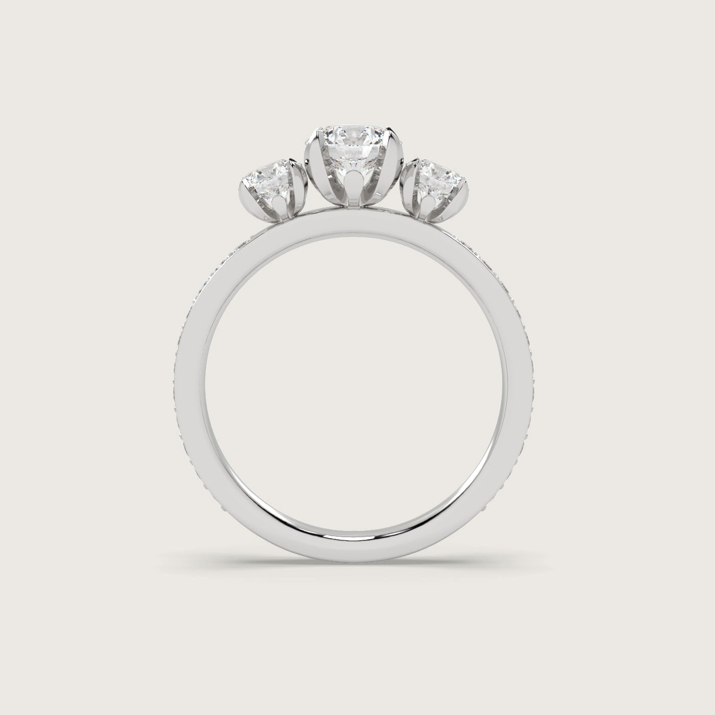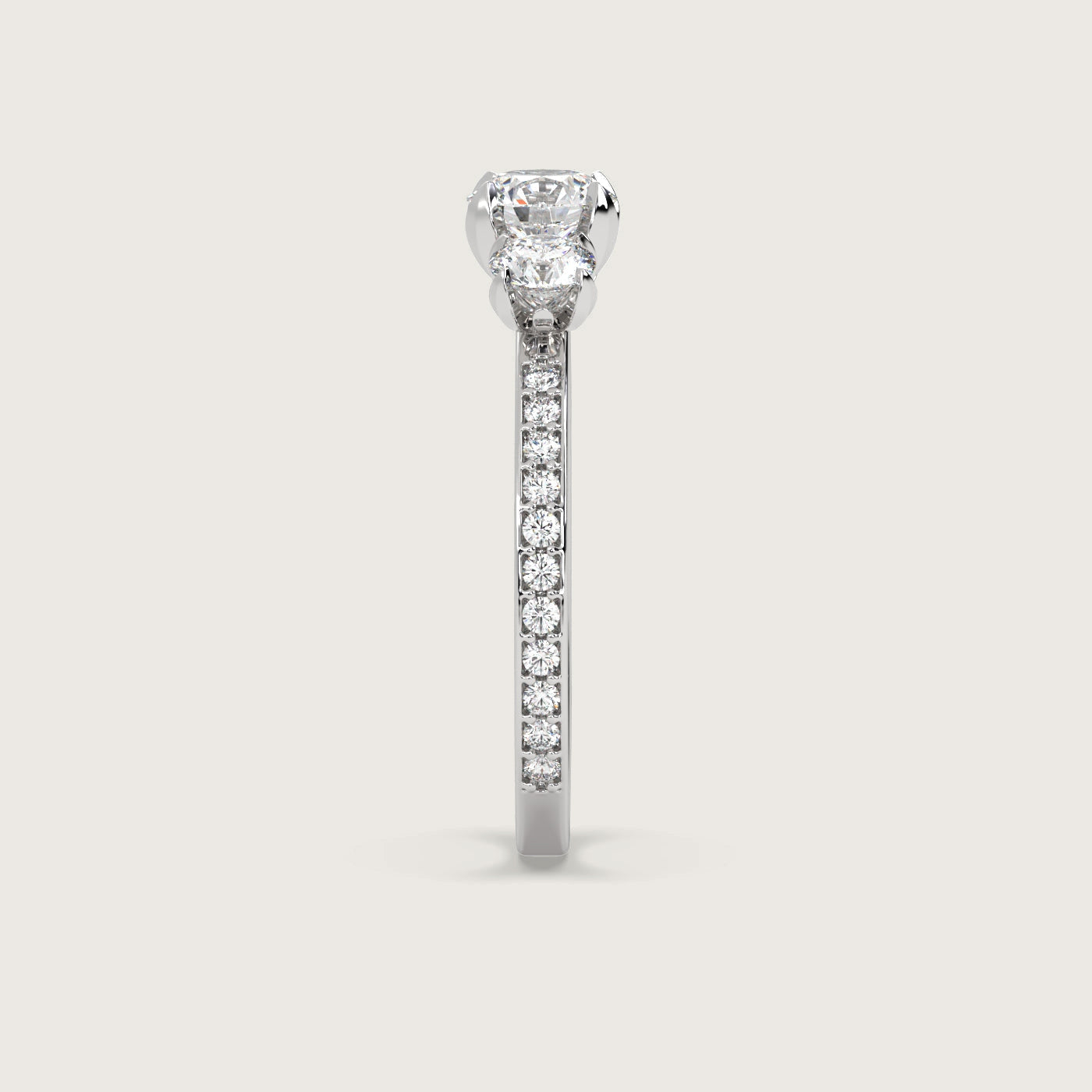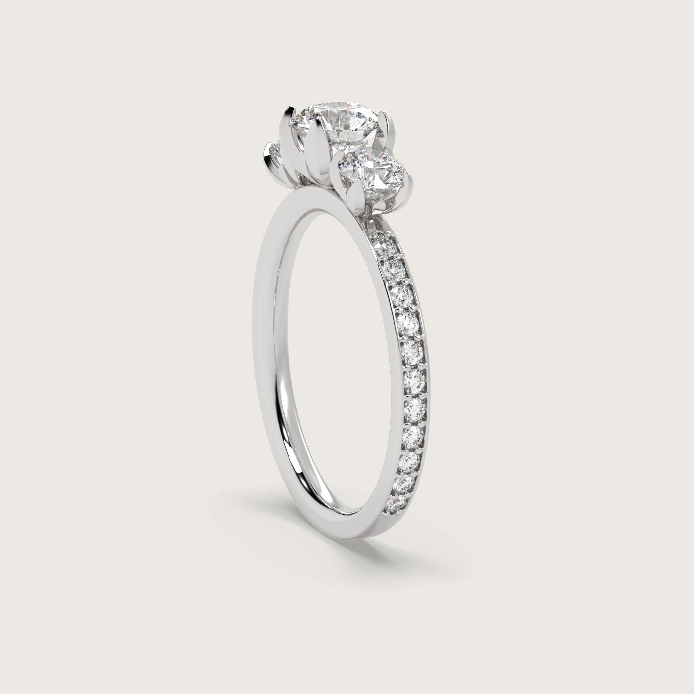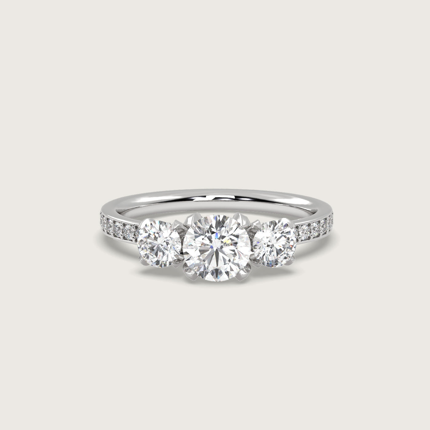 Diamond Trilogy Engagement Ring with Pavé Band in Fleur de Luce Setting