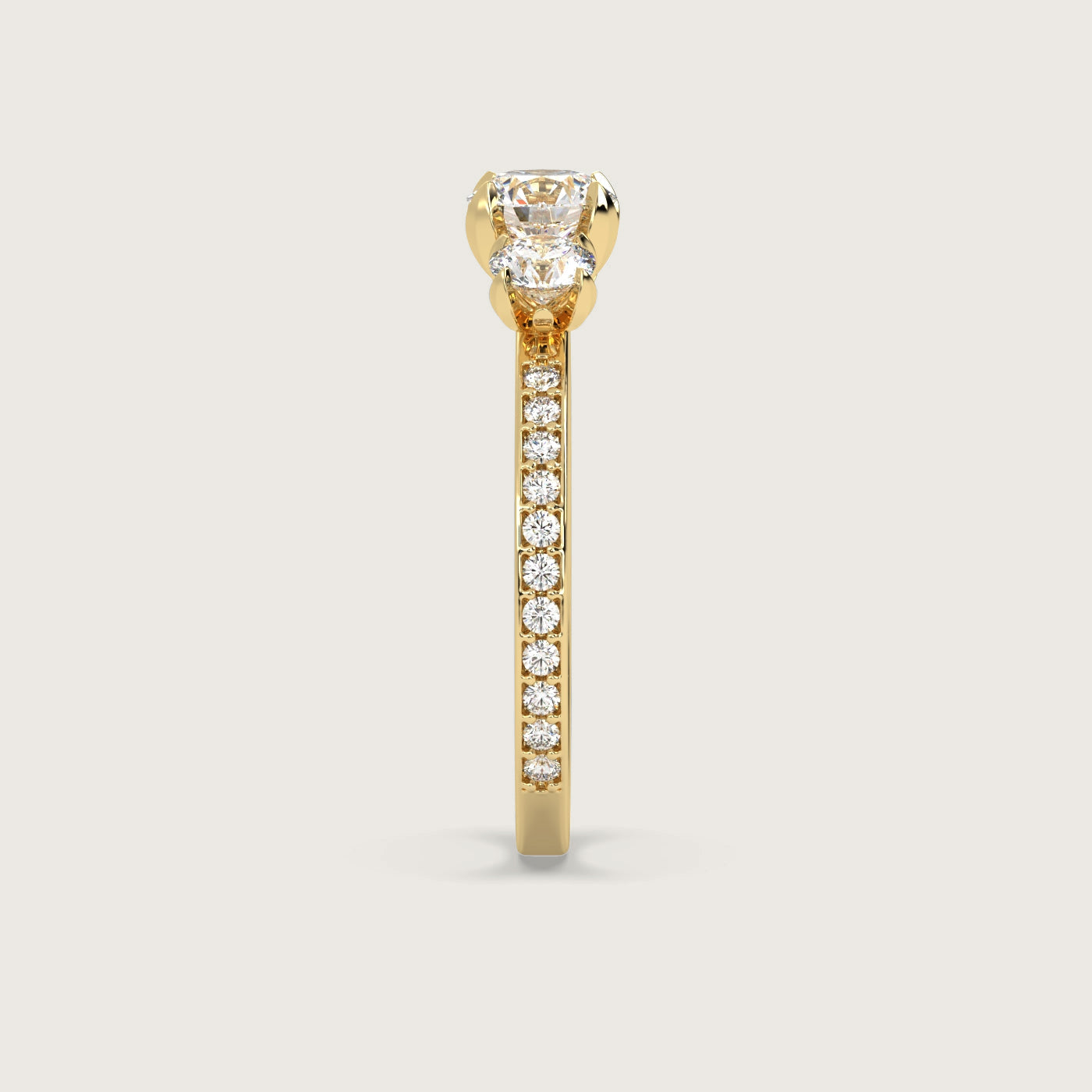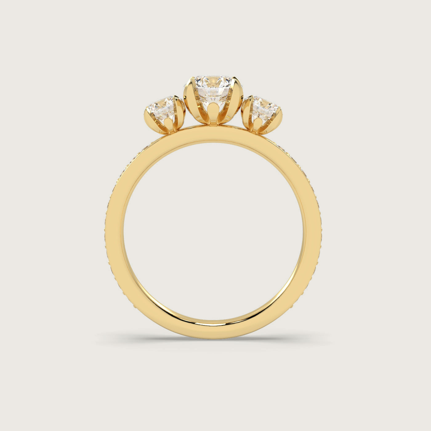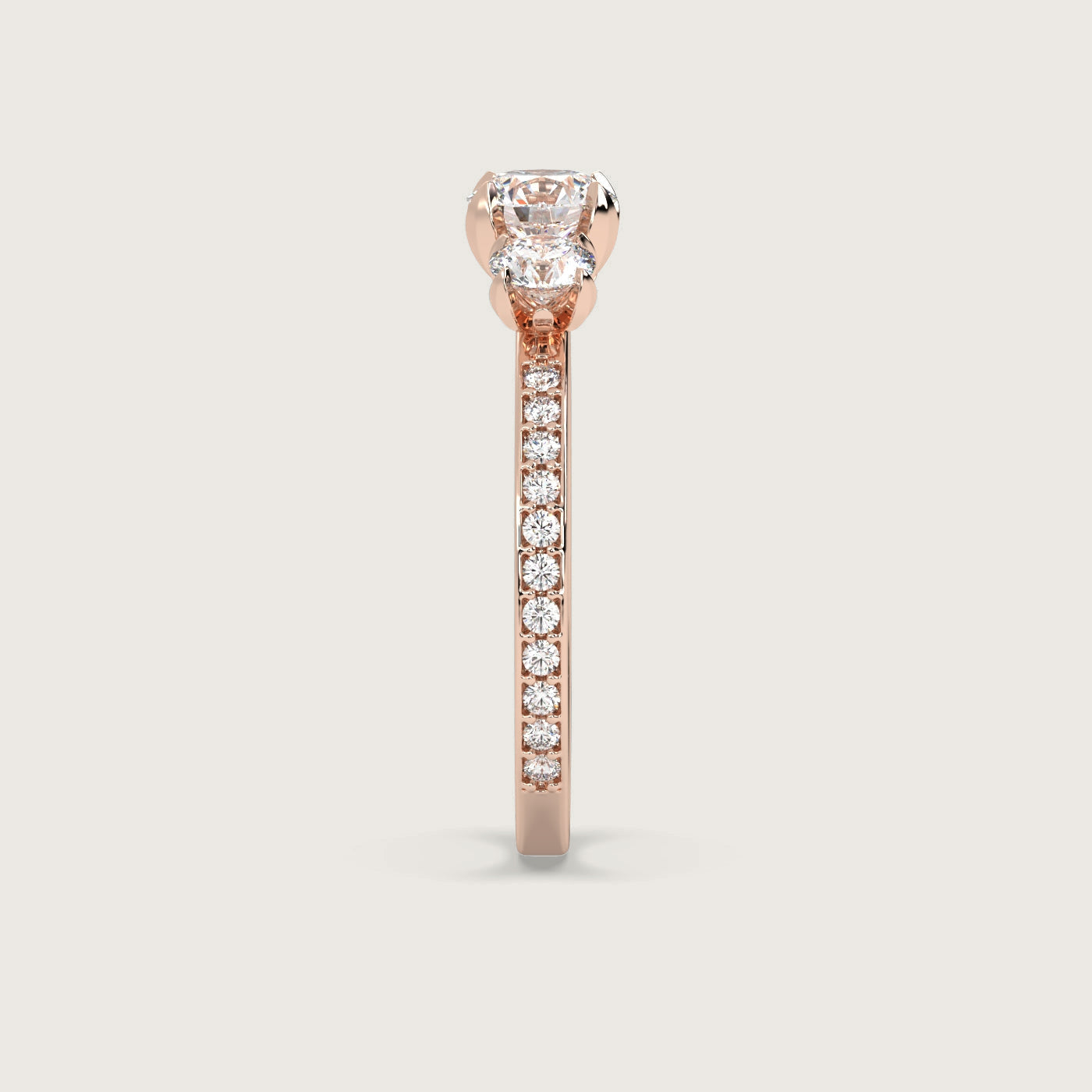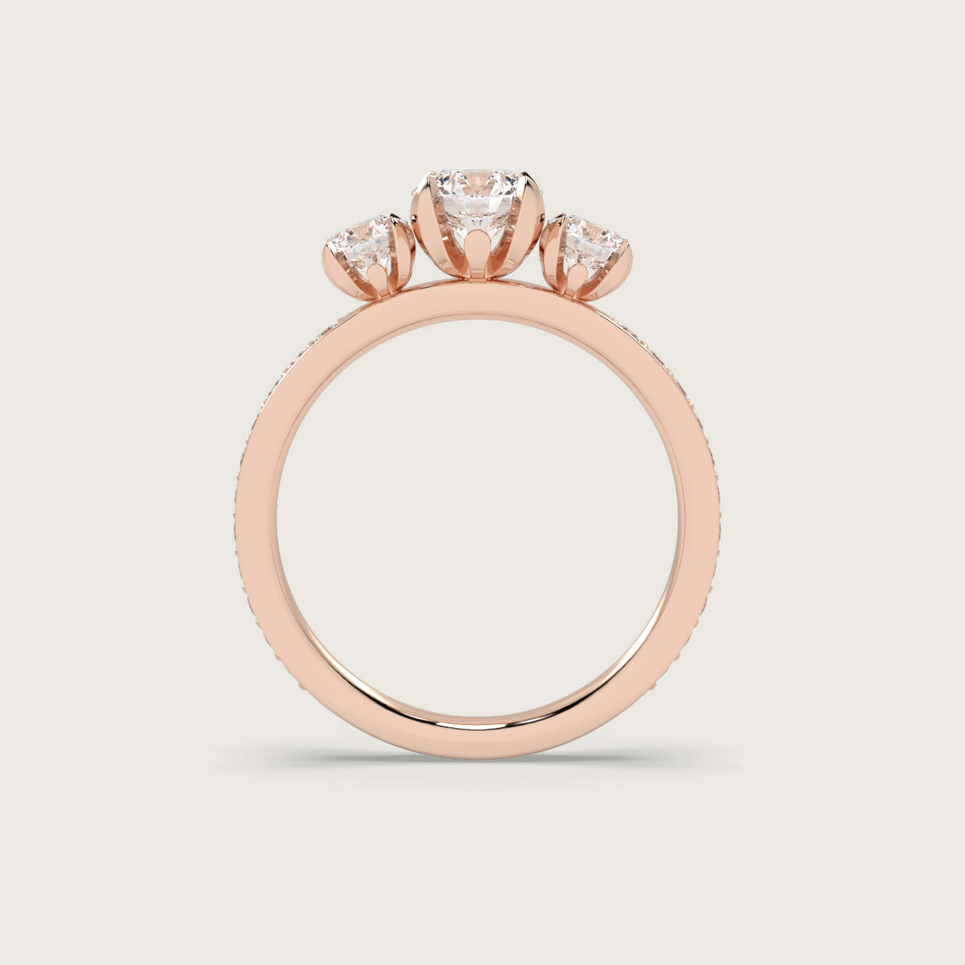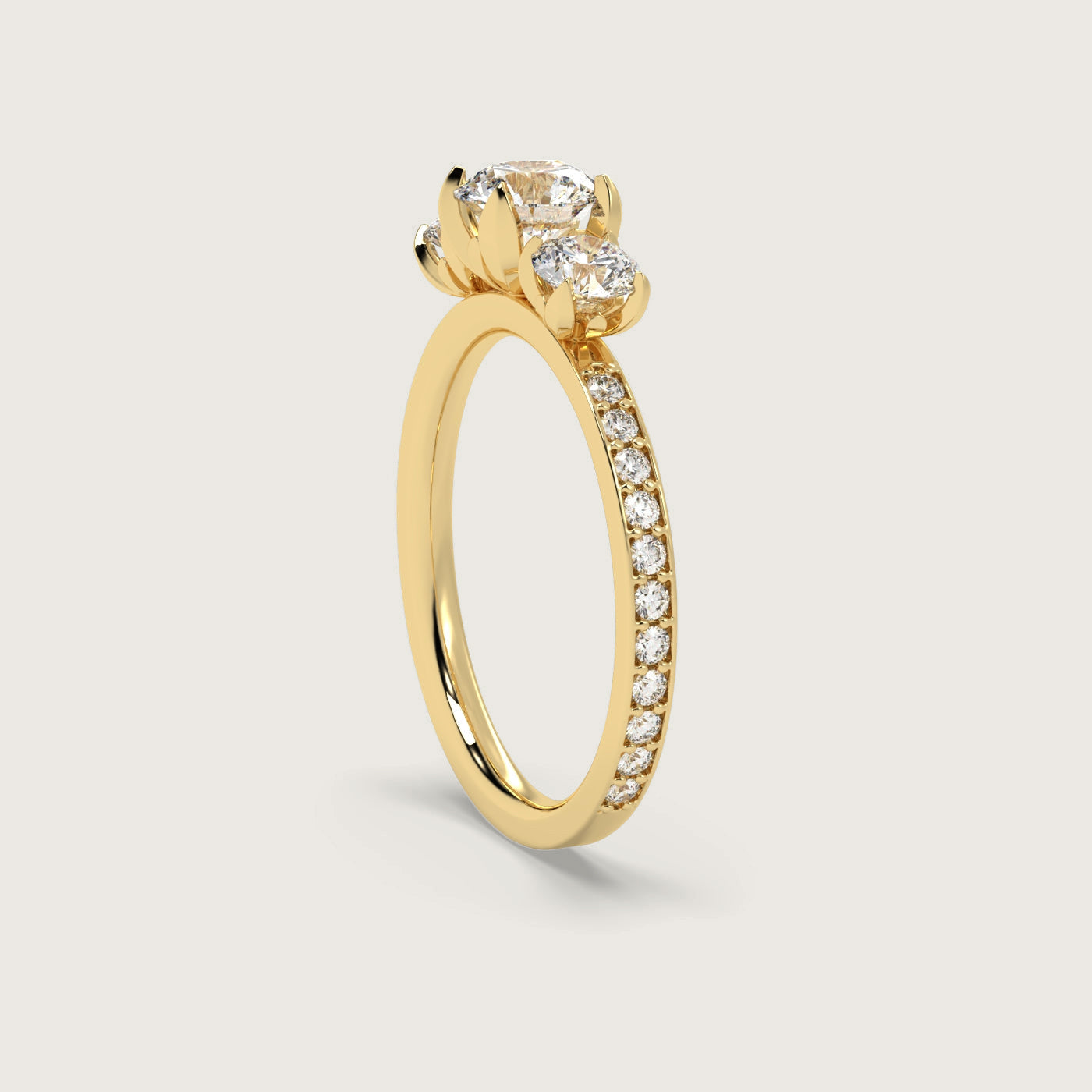 Diamond Trilogy Engagement Ring with Pavé Band in Fleur de Luce Setting