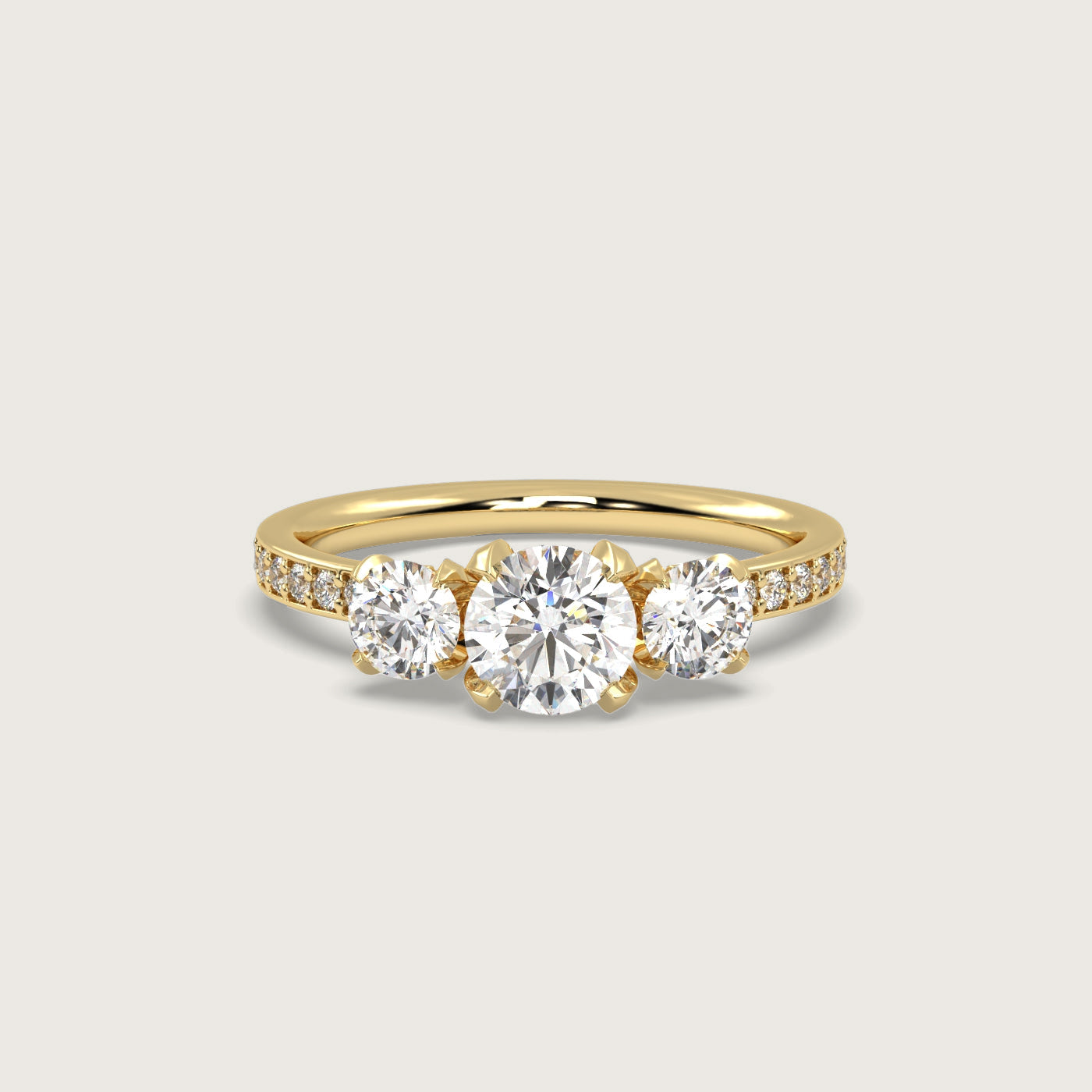 Past, present, future - held in light. This round diamond trilogy engagement ring is sculpted in our exclusive Fleur de Luce claw setting, balancing symbolism and sparkle with graceful strength.